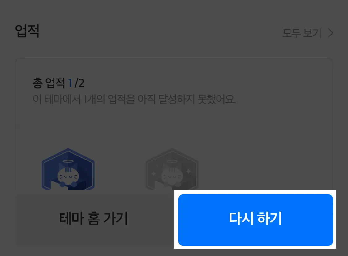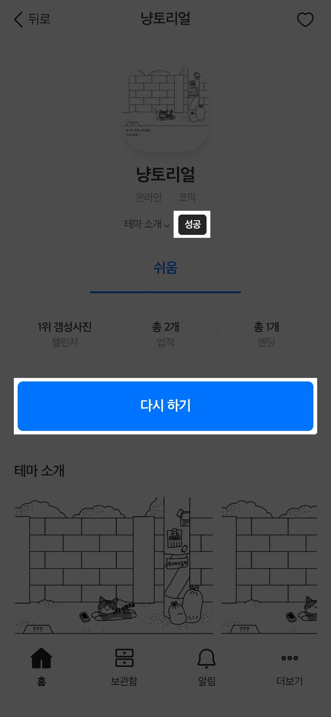 완료(성공)한 테마를 다시 플레이하고 싶은 경우