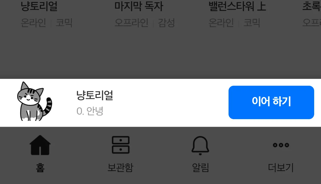 메인 홈에 가면 직전에 플레이했던 테마로 바로 이동할 수 있는 이어 하기 버튼이 하단에 뜹니다. 해당 버튼을 클릭해 테마를 이어 하실 수도 있습니다.